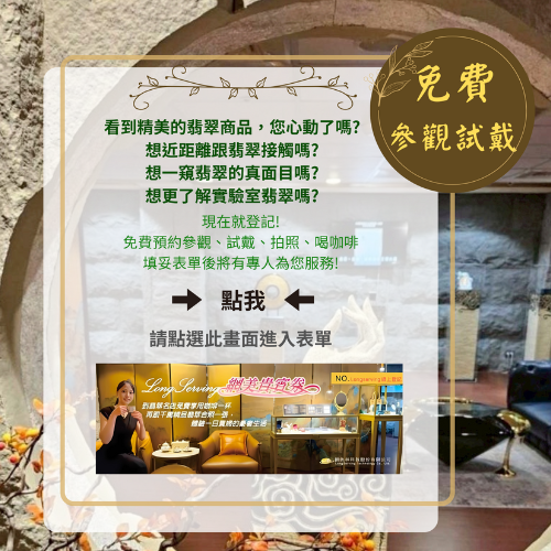 We sincerely invite you to make an appointment to visit the [ Longserving Art Center | Taipei Flagship Store] for a tranquil and distinguished jade appreciation journey.