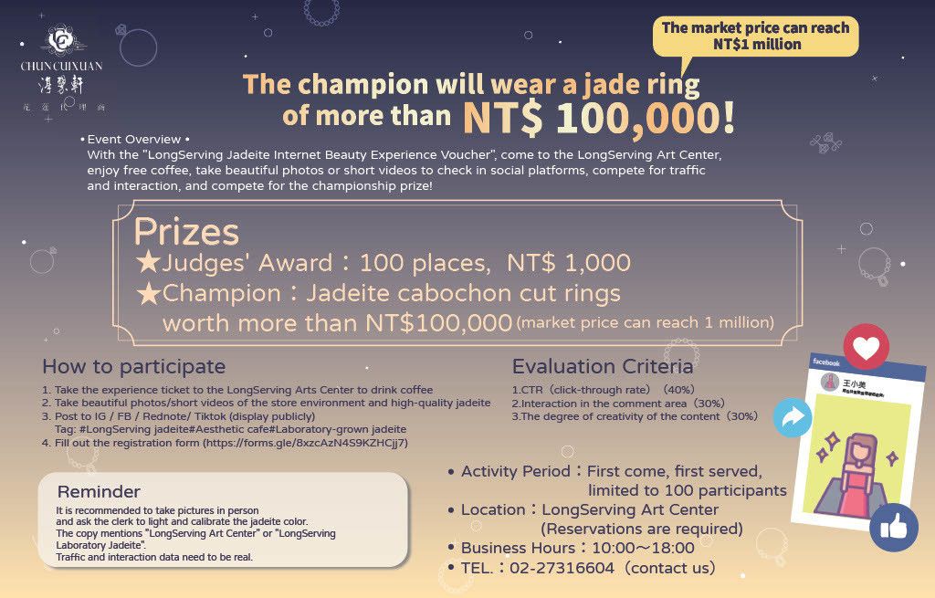 With the "LongServing Jadeite Internet Beauty Experience Voucher", come to the LongServing Art Center,